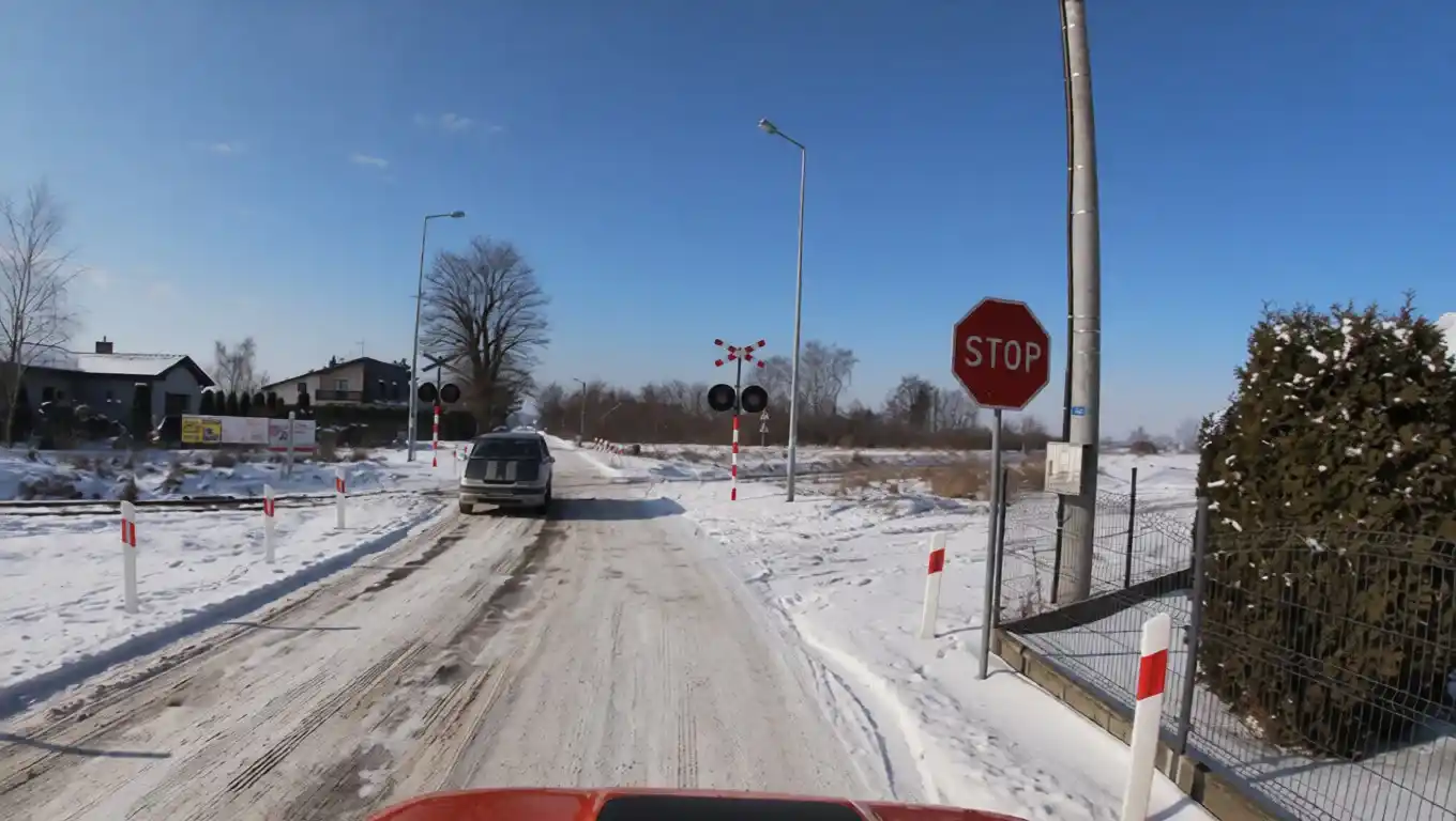 Czy w tej sytuacji, zbliżając się do przejazdu kolejowego, masz obowiązek zatrzymać pojazd przed znakiem STOP?