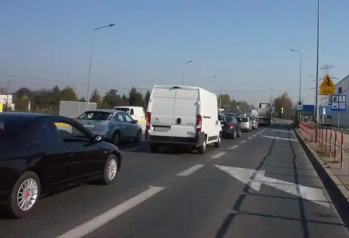 Czy w przedstawionej sytuacji chcąc zrealizować tzw. zasadę suwaka możesz wyprzedzić jadące obok samochody?
