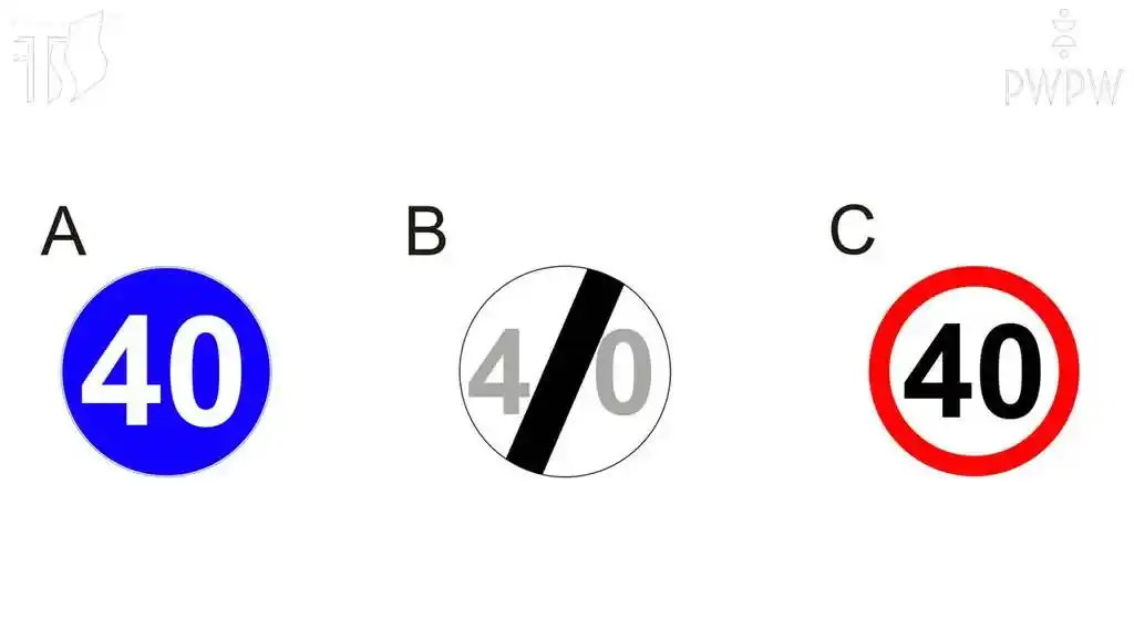 Który z pokazanych znaków zabrania przekraczania prędkości 40 km/h?