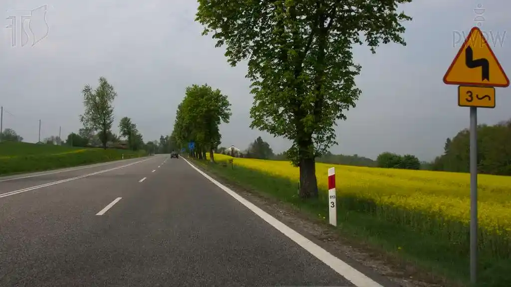 Czy w przedstawionej sytuacji jesteś ostrzegany o trzech niebezpiecznych zakrętach, z których pierwszy jest w lewo?
