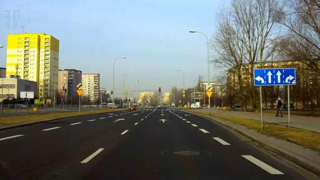Czy w tej sytuacji, zamierzając skręcić w prawo, powinieneś jechać dalej zajmowanym pasem ruchu i zmienić go bezpośrednio przed skrzyżowaniem?