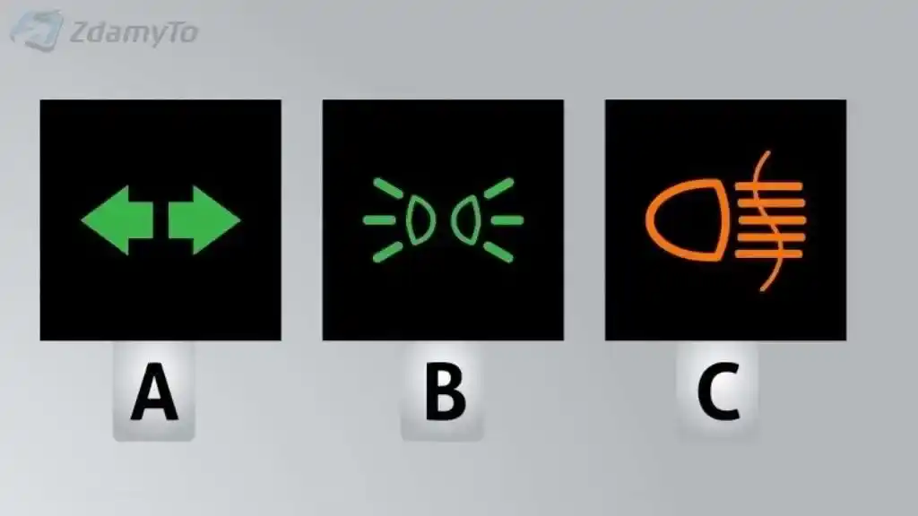 Która z widocznych na ilustracji lampek kontrolnych informuje o włączonych kierunkowskazach?