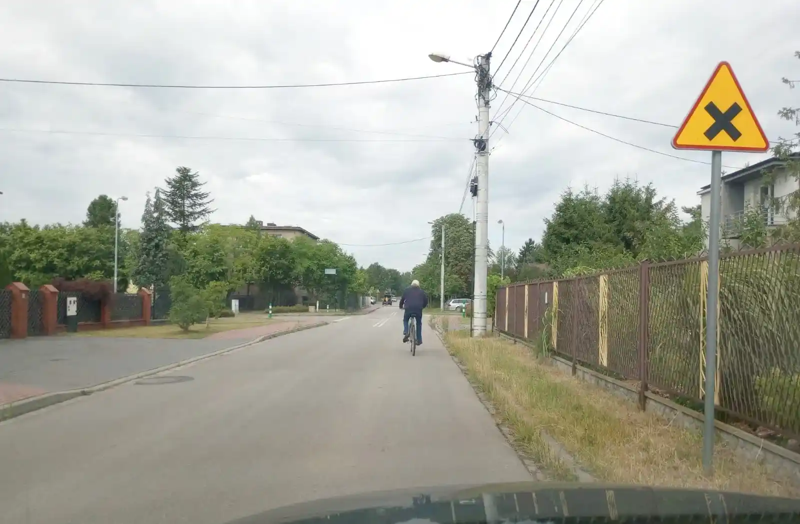 Czy w tej sytuacji, mimo że zakaz wyprzedzania rowerzysty nie obowiązuje na skrzyżowaniu, powinieneś powstrzymać się od wyprzedzania rowerzysty, gdyż ze względu na ograniczoną widoczność mogłoby ono doprowadzić do stworzenia zagrożenia bezpieczeństwa ?