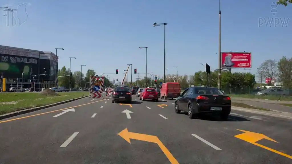 Czy w tej sytuacji wolno Ci jechać na wprost z zajmowanego przez Ciebie pasa ruchu?