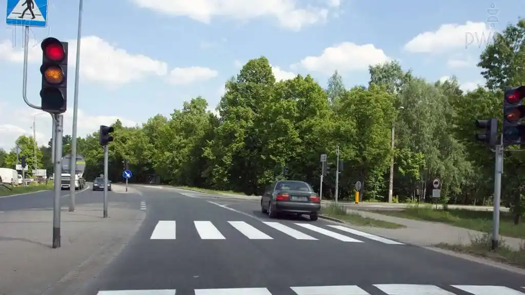 Czy w tej sytuacji nadawane sygnały świetlne zezwalają Ci na wjazd za sygnalizator?