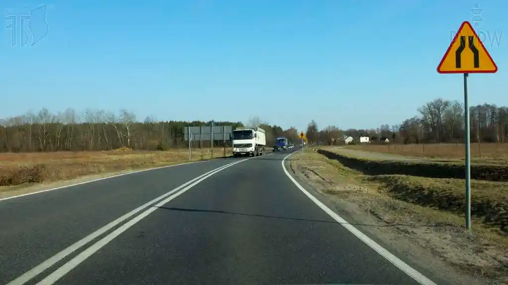 Czy w przedstawionej sytuacji jesteś ostrzegany o zwężeniu jezdni, które może powodować utrudnienia ruchu?