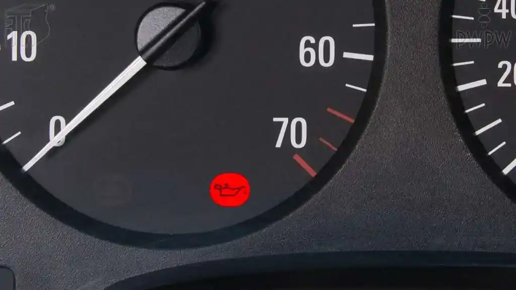 Który z wymienionych skutków może zostać wywołany przez kontynuowanie jazdy przy świecącej się na czerwono lampce kontrolnej ciśnienia oleju silnikowego?